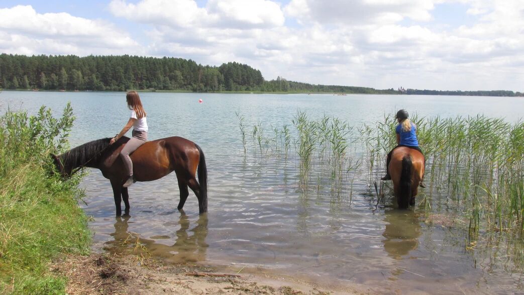 zajęcia konne rozpoczynamy drugiego dnia obozu (2 godz jazdy) , a kończymy dziewiątego dnia (2 godz jazdy połączone z pławieniem koni)